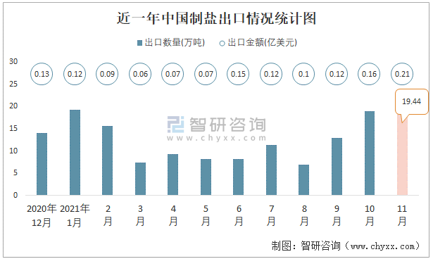 近一年中國制鹽出口情況統(tǒng)計(jì)圖