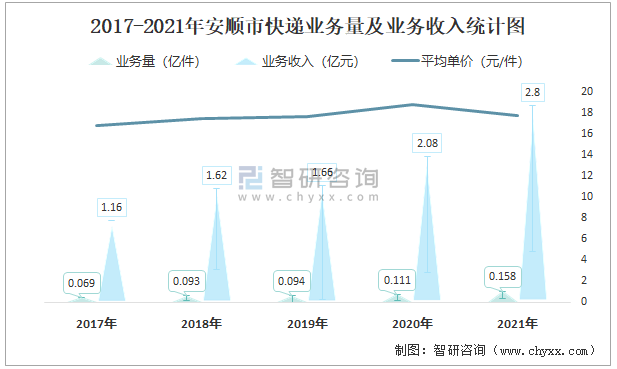 2017-2021年安順市快遞業(yè)務(wù)量及業(yè)務(wù)收入統(tǒng)計(jì)圖