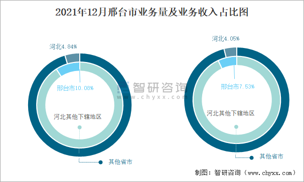 2021年12月邢臺(tái)市業(yè)務(wù)量及業(yè)務(wù)收入占比圖