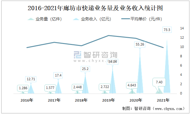 2016-2021年廊坊市快遞業(yè)務(wù)量及業(yè)務(wù)收入統(tǒng)計(jì)圖