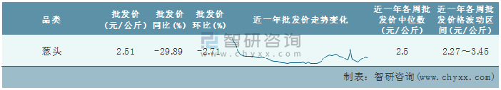 根據農村農業部數據統計可知:2022年第7周全國蔥頭平均批發價為2.51元/公斤,同比下跌29.89%,環比下跌2.71%,近一年全國蔥頭平均批發價最高達到3.45元/公斤,批發價最低也要2.27元/公斤。