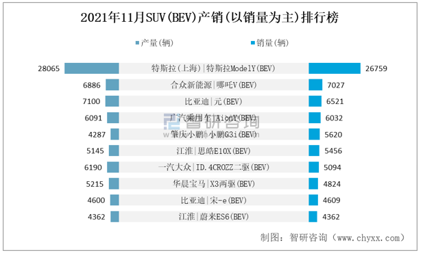 2021年11月SUV(BEV)產(chǎn)銷(以銷量為主)排行榜