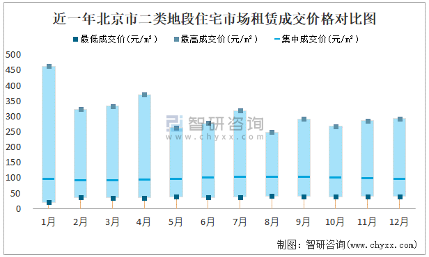 近一年北京市二類地段住宅市場租賃成交價格對比圖