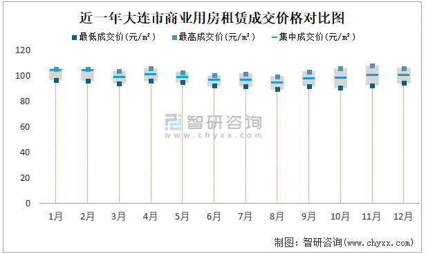 近一年大連市商業用房租賃成交價格對比圖