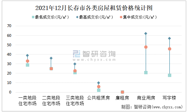 2021年12月長(zhǎng)春市各類房屋租賃價(jià)格統(tǒng)計(jì)圖