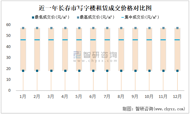 近一年長(zhǎng)春市寫字樓租賃成交價(jià)格對(duì)比圖