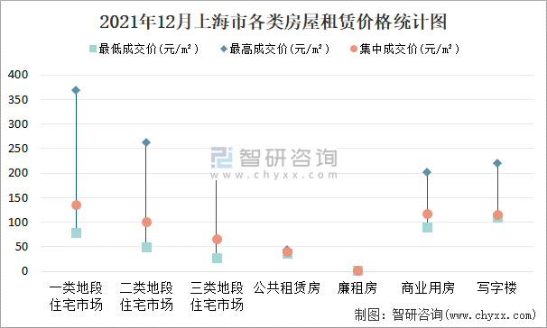 2021年12月上海市各類房屋租賃價格統計圖