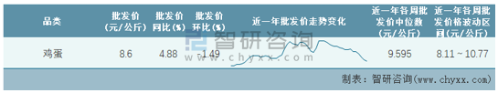 根據農村農業部數據統計可知:2022年第9周全國雞蛋平均批發價為8.6元/公斤,同比增加4.88%,環比下跌1.49%,近一年全國雞蛋平均批發價最高達到10.77元/公斤,批發價最低也要8.11元/公斤。