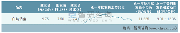 根據農村農業部數據統計可知:2022年第9周全國白鰱活魚平均批發價為9.75元/公斤,同比增加7.5%,環比下跌7.41%,近一年全國白鰱活魚平均批發價最高達到12.36元/公斤,批發價最低也要9.01元/公斤。