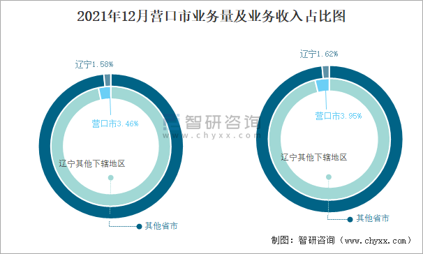 2021年12月營口市業(yè)務(wù)量及業(yè)務(wù)收入占比圖
