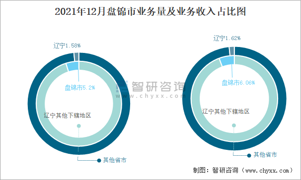 2021年12月盤錦市業務量及業務收入占比圖