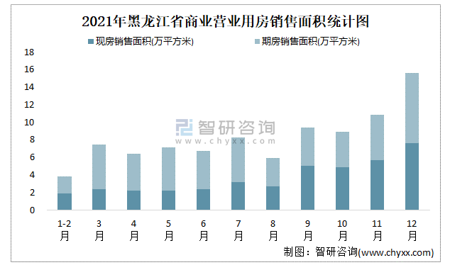 根據國家統計局數據可知:2021年黑龍江省商業營業用房銷售面積為90.53萬平方米(其中銷售現房40.05萬平方米,銷售期房50.48萬平方米),2021年12月黑龍江省商業營業用房銷售面積為15.65萬平方米;2021年黑龍江省商業營業用房期房銷售面積遠高于現房銷售面積。