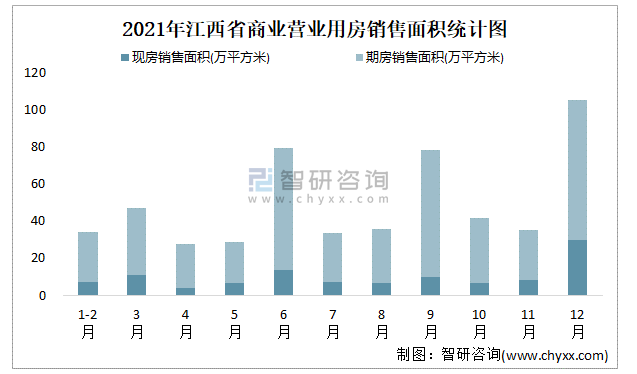 根據國家統計局數據可知:2021年江西省商業營業用房銷售面積為545.2萬平方米(其中銷售現房110萬平方米,銷售期房435.2萬平方米),2021年12月江西省商業營業用房銷售面積為105.25萬平方米;2021年江西省商業營業用房期房銷售面積遠高于現房銷售面積。