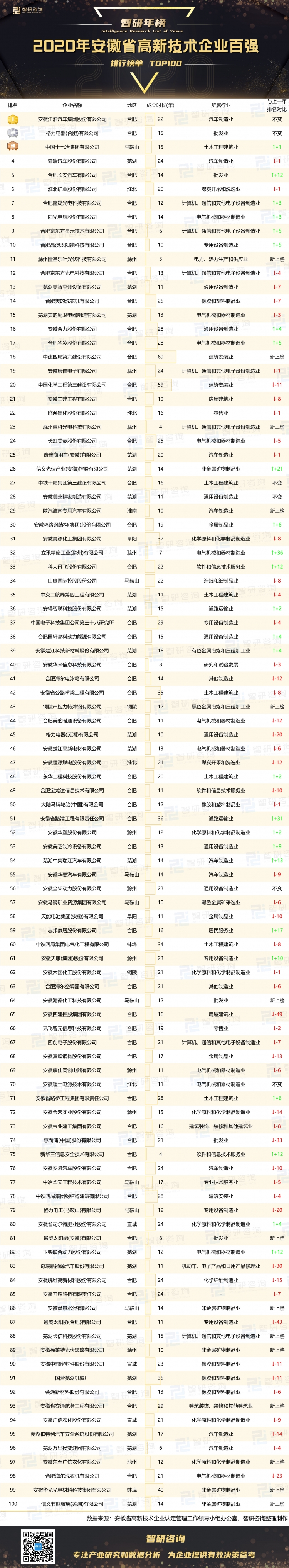 中建四局第六建設有限公司(69年)成立時間最長,此次上榜為新上榜,中國化學工程第三建設有限公司已成立59年,安徽華光光電材料科技集團有限公司已成立40年,此次上榜為新上榜,此外還有35家企業成立不少于20年,8家企業成立不足10年,其中合肥京東方顯示技術有限公司成立僅6年,此次排名第9,滁州隆基樂葉光伏科技有限公司成立時間最短,僅3年,此次排名第11。