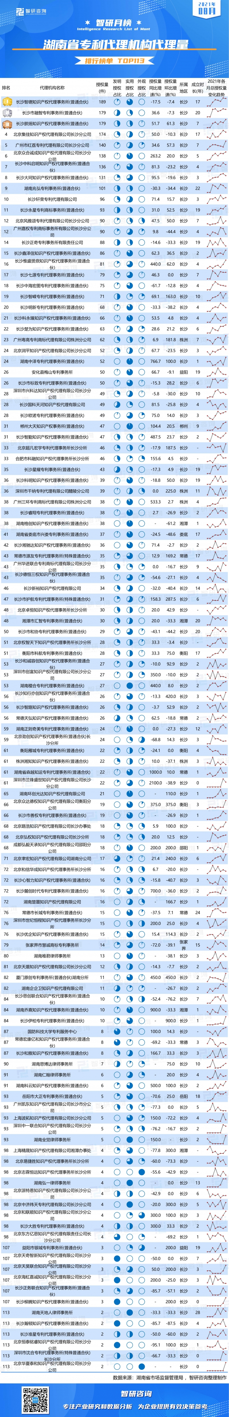 注:此榜單中代理機構所代理的專利數量只包括申請人地址在湖南地區的專利數量,其他地區專利不包括在內。