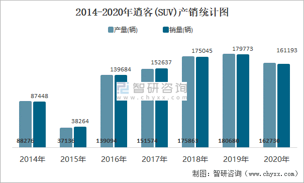 2014-2020年逍客(SUV)產(chǎn)銷統(tǒng)計圖